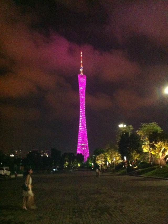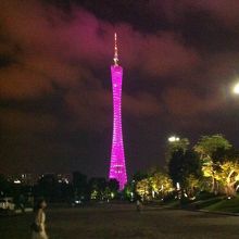 地下鉄3号線の赤崗塔駅を上がってすぐに見えます。夜になるとパープルやブルーなどの蛍光色でド派手なライトアップがされ、非常に目立ちます。タワーからは広州が一望できるのですが、登るだけで300人民元は高すぎます。