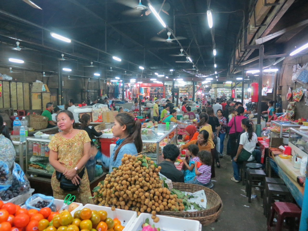 そして、一番奥に行くと、野菜、果物、肉、飲食店など、カンボジアのドローカルな姿が表します。
