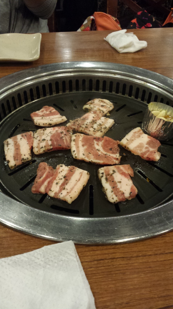 深夜12時位の来店でしたが、店内は賑わっていました。ここのハーブサムギョプサルは本当に美味しいです。一緒に行った友人も絶賛!店員さんは日本語をあまり話せないけれど、日本語表記があるので安心です。野菜のおかわりはセルフで取に行きます。値段も手頃だし、必ず又行きたいお店です。