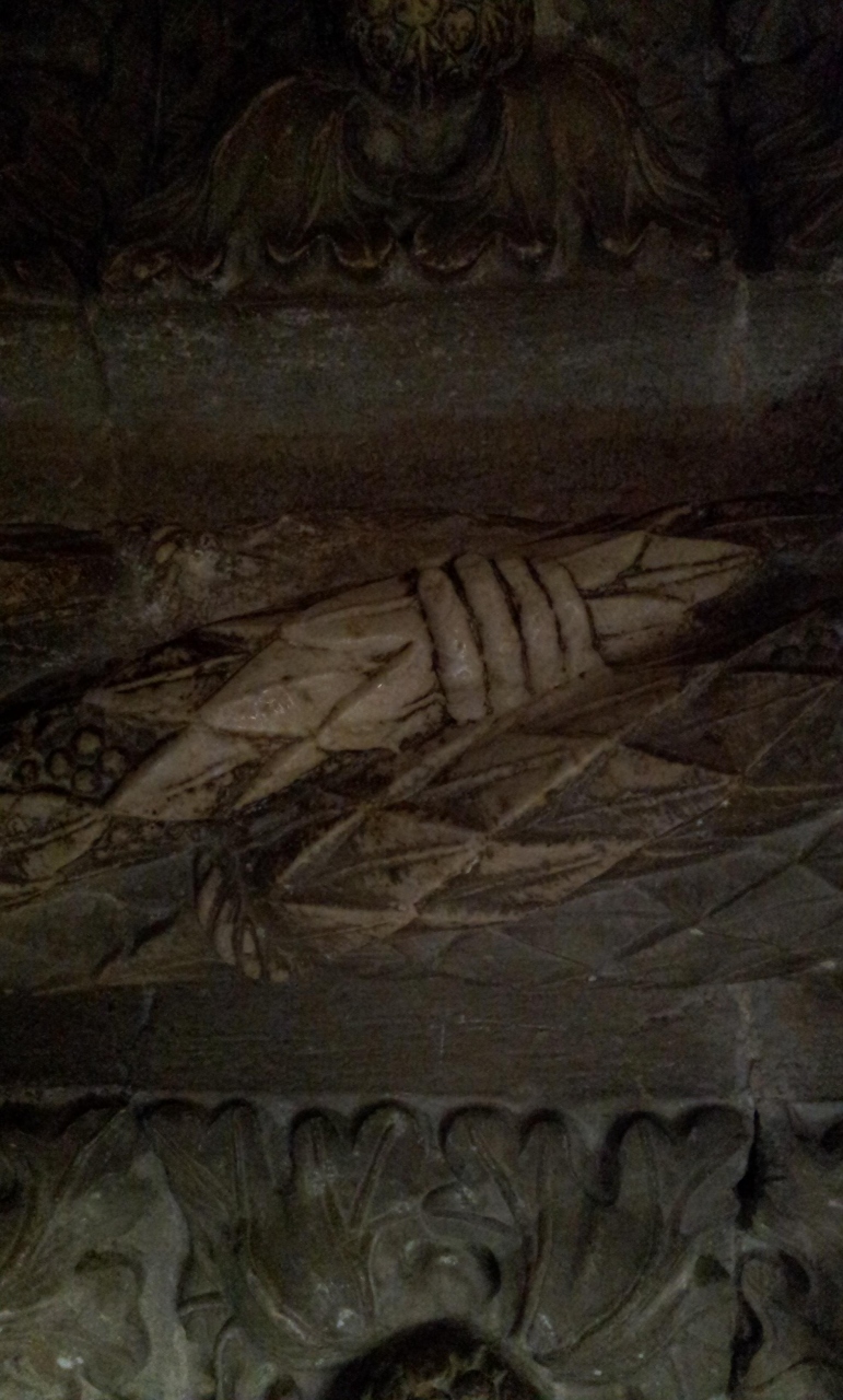 触れると願いが叶うといわれている「ロープを掴む手」を見つけたので撮影しました。