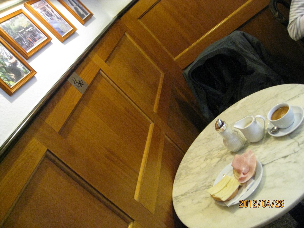 フランクフルトに有名なカフェがあると聞いて朝食に訪問。ゲーテハウスの近くをかなり彷徨いやっと到着。早朝より客が多く、何とか一席を確保してブレンドを注文。日本でこれまで味わったことのない旨さに感激。思わず2杯目を頼んだ。コーヒー好きなら絶対に訪れるべき店。