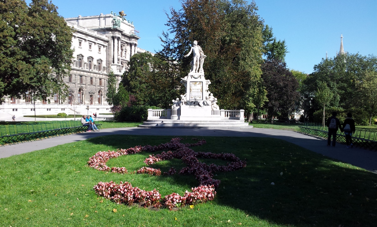 王宮庭園に、存在感を感じさせない華奢なモーツアルト像が立っていました。