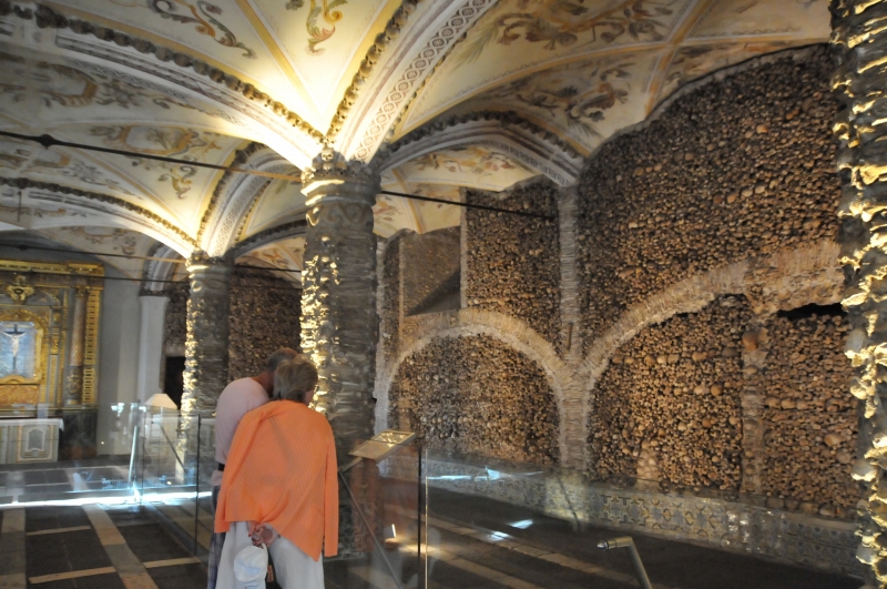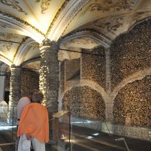 サン・フランシスコ教会と人骨堂は入口が分かれています。教会は無料で見学できますが、人骨堂の入場料は2ユーロ。ただし写真を撮りたい場合は1ユーロの追加料金がかかります。なかなか商売上手ですね。人骨堂は圧巻。生と死について考えされられます。