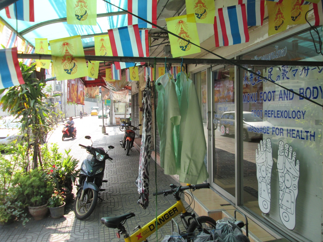 12/27(金)の朝10時頃に訪問すると待ち時間なくすぐ行うことができました。足の裏のマッサージ60分300バーツ、背中・肩・頭のマッサージ60分300バーツを選択しました。3枚目となるポイントカードの利用を開始しました。28日と書いてありますが、手書きなので間違っており、実際は27日が正です。