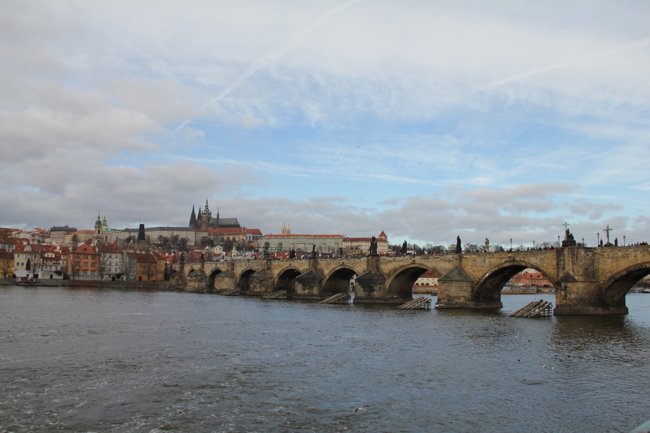 ブルタバ川岸から見る橋も素敵でした。奥にはプラハ城!