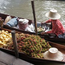 ボート上で買い物は至難の業。なので、お土産センターの脇に泊まってる船で買い物をしました。食べながら写真やビデオはちょっときついです。
