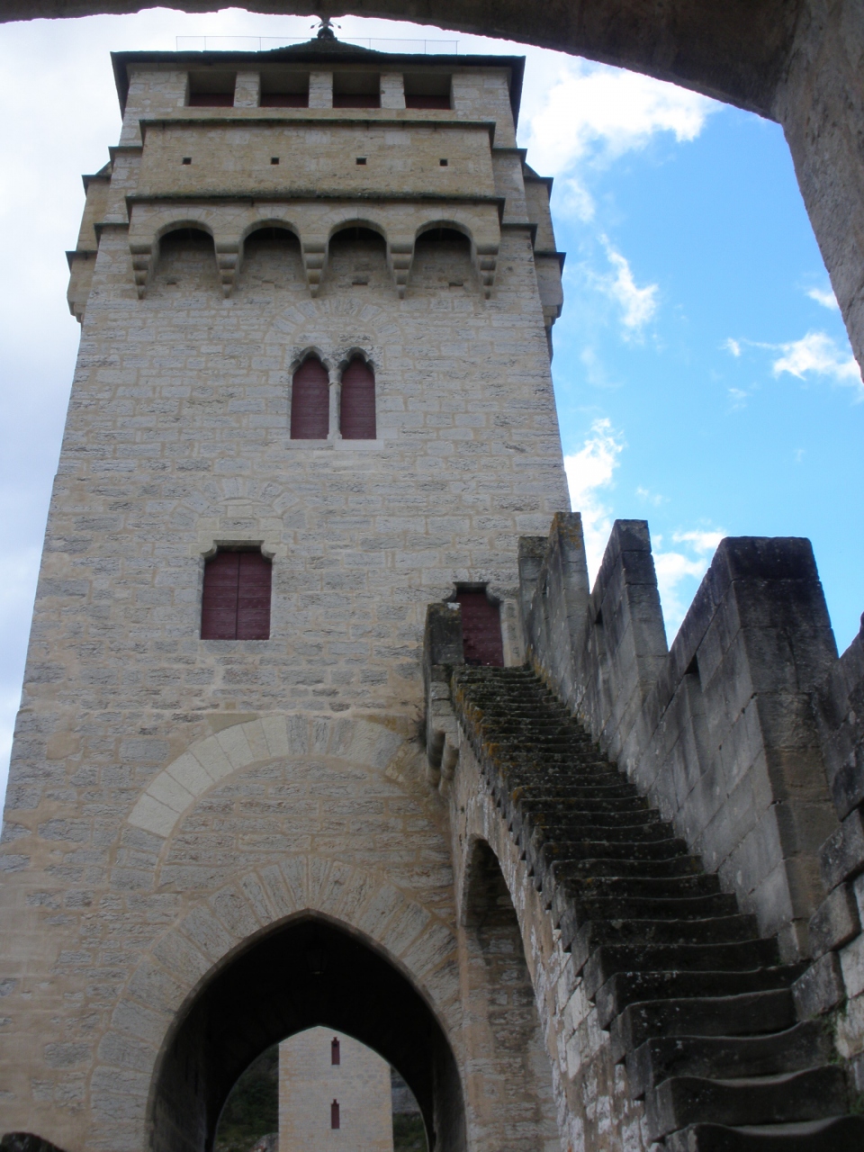 橋の3箇所の塔には石段がついていて上れますが、片側は壁も手摺もありません。