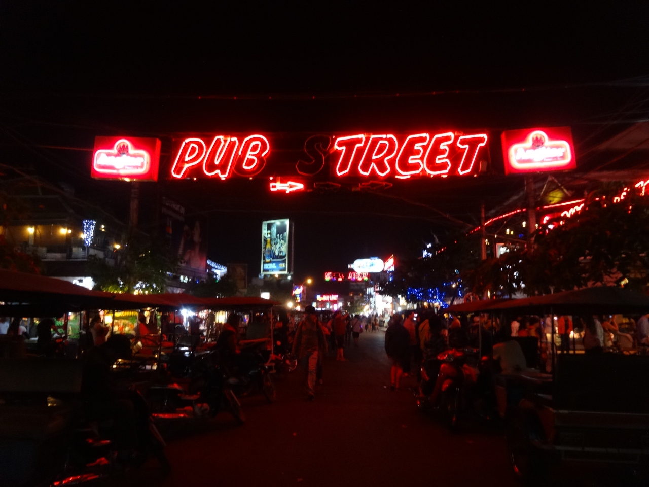 シェムリアップ位置の繁華街であり、かなり活気があります。