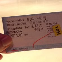 香港からマカオへの移動は今のところ高速船の移動が便利です。もちろん出入国手続きが必要ですので、40分前には船着き場についていた方がいいとお思います。船に乗る前にチケットに席のシールを貼ってもらいますので同行者いる場合は一緒に貼ってもらいましょう。時間は早めることは可能です。Stand byの列に並んで最後に乗船します。