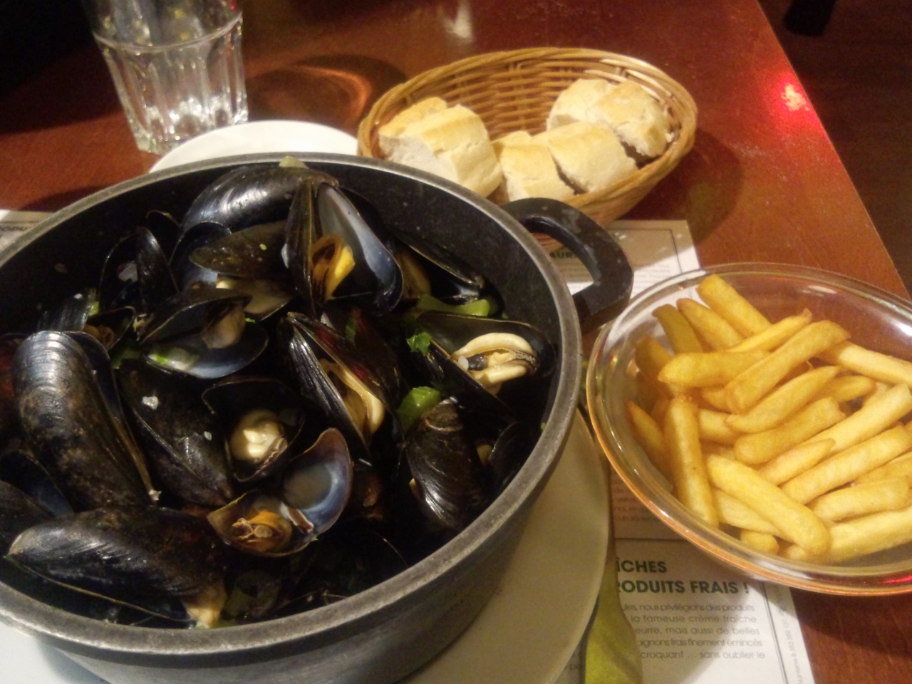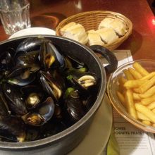 ムール貝で有名なチェーン店のようです。本店はベルギーらしい。ガイドさんも薦めてくれましたり、ガイドブックにも載っていますね。地元の人はカフェとして、甘いものを食べてる人も結構いました。