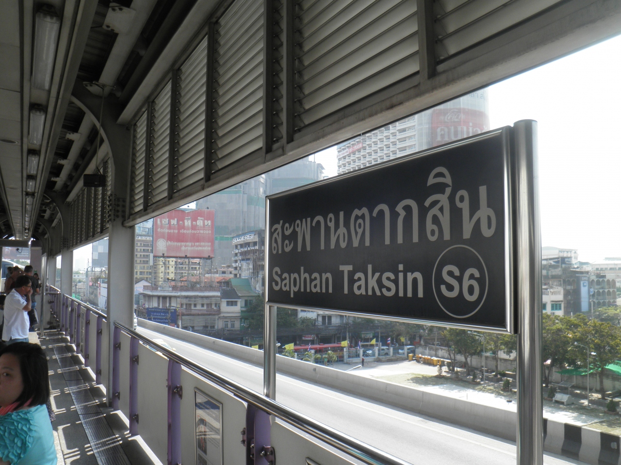 バンコク高架鉄道BTSのサラディーン駅から、サパーンタクシン駅に行きました。 ここには、チャオプラヤー川の船着き場があり、チャオプラヤーエキスプレスボートに乗りました。 観光シーズンなのでこの駅でおりる人はとても多かったです。