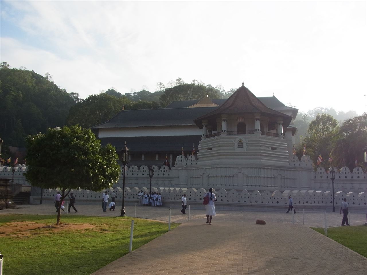 キャンディ観光で外せない場所でしょうが正直イマイチでした。敷地は広く、まずは庭園のような道を数分歩きます。チケット売り場は建物の左手奥で、入場料は1000ルピーと高いうえに正直いらないCD付き。靴もここで預けます。プージャーの時間ではなかったので閑散としていました。博物館もあり、そこで仏歯のレプリカも見れますが、係員がついてきて説明をされ、最後にチップをねだられました。