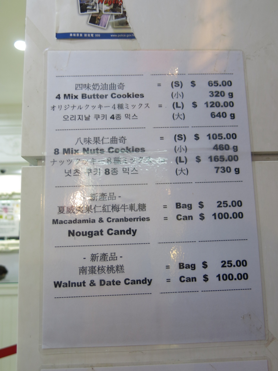 2013年12月時点では、チムサーチョイとショウワンの2店舗での営業ということでした。この1年で転々としている気がします。開店前から美麗都をぐるっと囲む500人の大行列。本家が完売で閉店したあと、周りのお店や重慶大厦のいたるところで転売されていました。クッキーの転売って…恐るべし中華パワー
