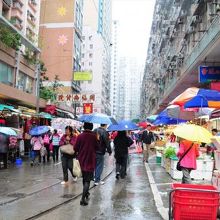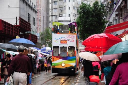 北角に食事に行ったついでに、春秧街を通りました。短い通りの両脇に、洋服を売るお店や食料品(肉、野菜、魚など)を売るお店がずらっと並んでいます。そんなに広い通りではないのですが、真ん中にはトラムの線路があり、時々ゆっくりとトラムが通っていきます。市場の買い物客もトラムが来たからと言って動揺する様子も無く、普通にさささーっと散っていく感じで、面白いです。トラムと市場の組み合わせが面白くて、雨の日でしたが、しばらくその風景を眺めていました。ローカルな雰囲気が好きな方にお勧めです。