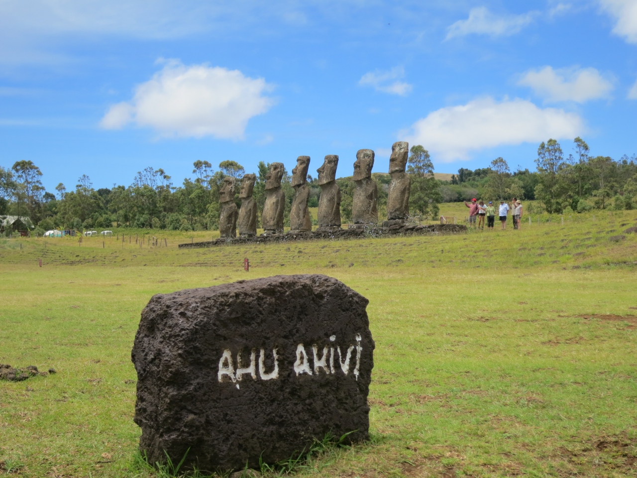 7体のモアイは大きさはこじんまりですが、島で唯一海を見つめるモアイです。