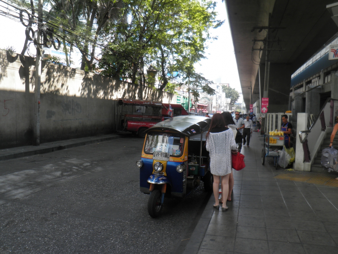 バンコクで久しぶりにトゥクトゥクに乗りました。 値段を交渉したのですが、地方では普通に乗れるのに、バンコクでは観光客だと高い値段をいってくることが多いように感じます。でも、話のタネにはいいし、記念撮影に応じてくれたのでうれしかったです。 でも、排気ガスをモロにうけるので長距離はキツイようです。