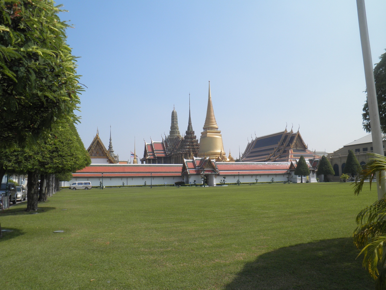 バンコクのワット・プラケオと王宮を観光した時、王宮前広場は反政府デモをやっているせいか警備が厳重でした。 でも、一歩中に入ると、観光客はたくさんいますがのんびりした感じでした。プラ モンドップ はワット・プラケオ内にある大きな戦闘で、純粋なタイ様式なのだそうです。