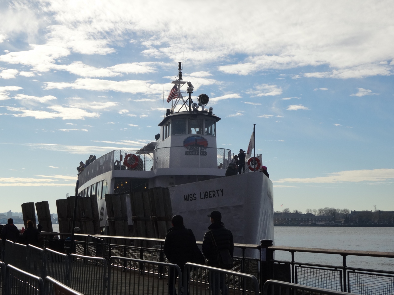 10時位のフェリーで出発しました。乗り込む前は空港の様なセキュリティーチェックをします。リバティ島まで約30分です。かもめがフェリーについて来ていたのがかわいかったです。