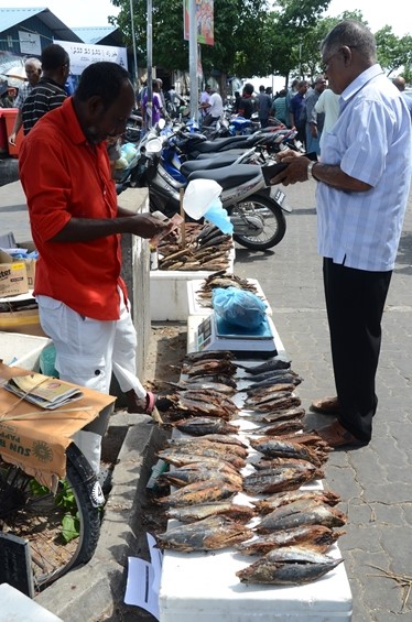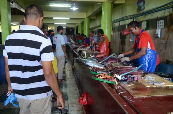 魚市場は野菜・果物市場と同様に、島の北岸を通っている部分のボドゥタクルファヌ・マグ通り沿いにあります。