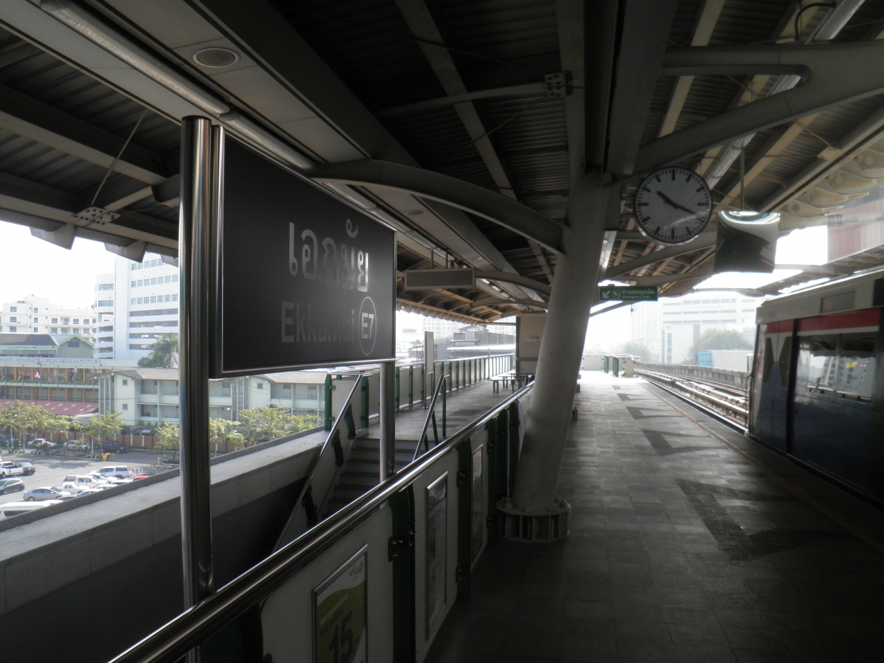 バンコク高架鉄道のBTSのアソーク駅で乗って、エカマイ駅でおりました。 パタヤ行のバスにのるためで、エカマイのバスターミナルはすぐ近くにあります。 まわりには飲食店が多いので、食事とトイレをすましておきました。 コンビニがあるので、飲料水を購入しました。