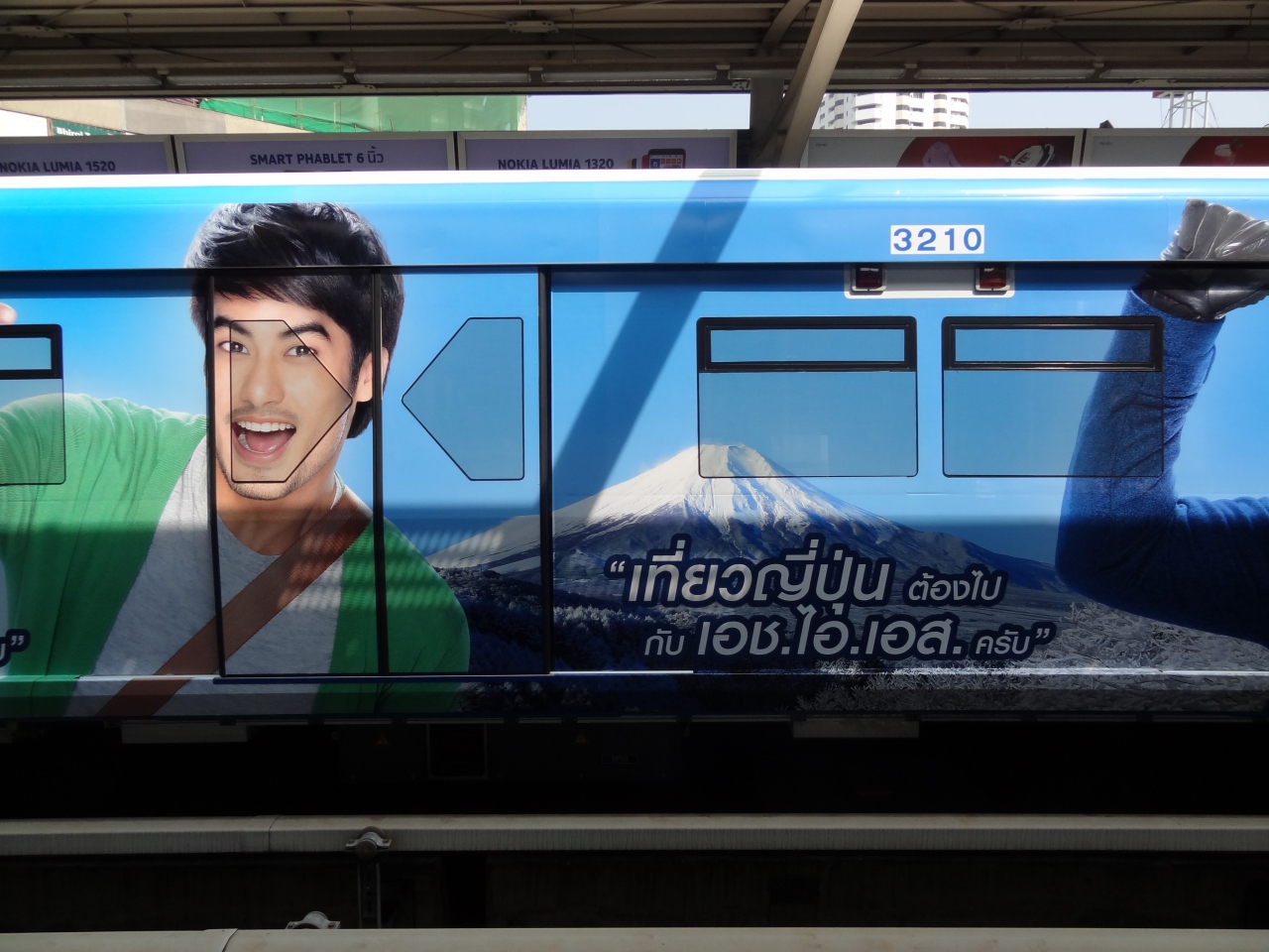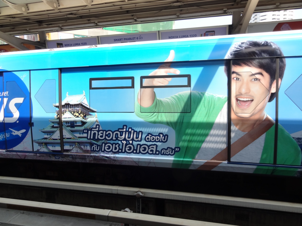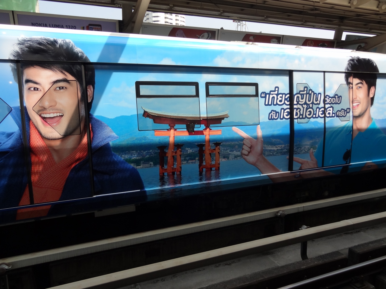 それとBTSは、列車(4両編成)ごとに、車両全体がスポンサー1社の広告となっていて、楽しませてくれます。