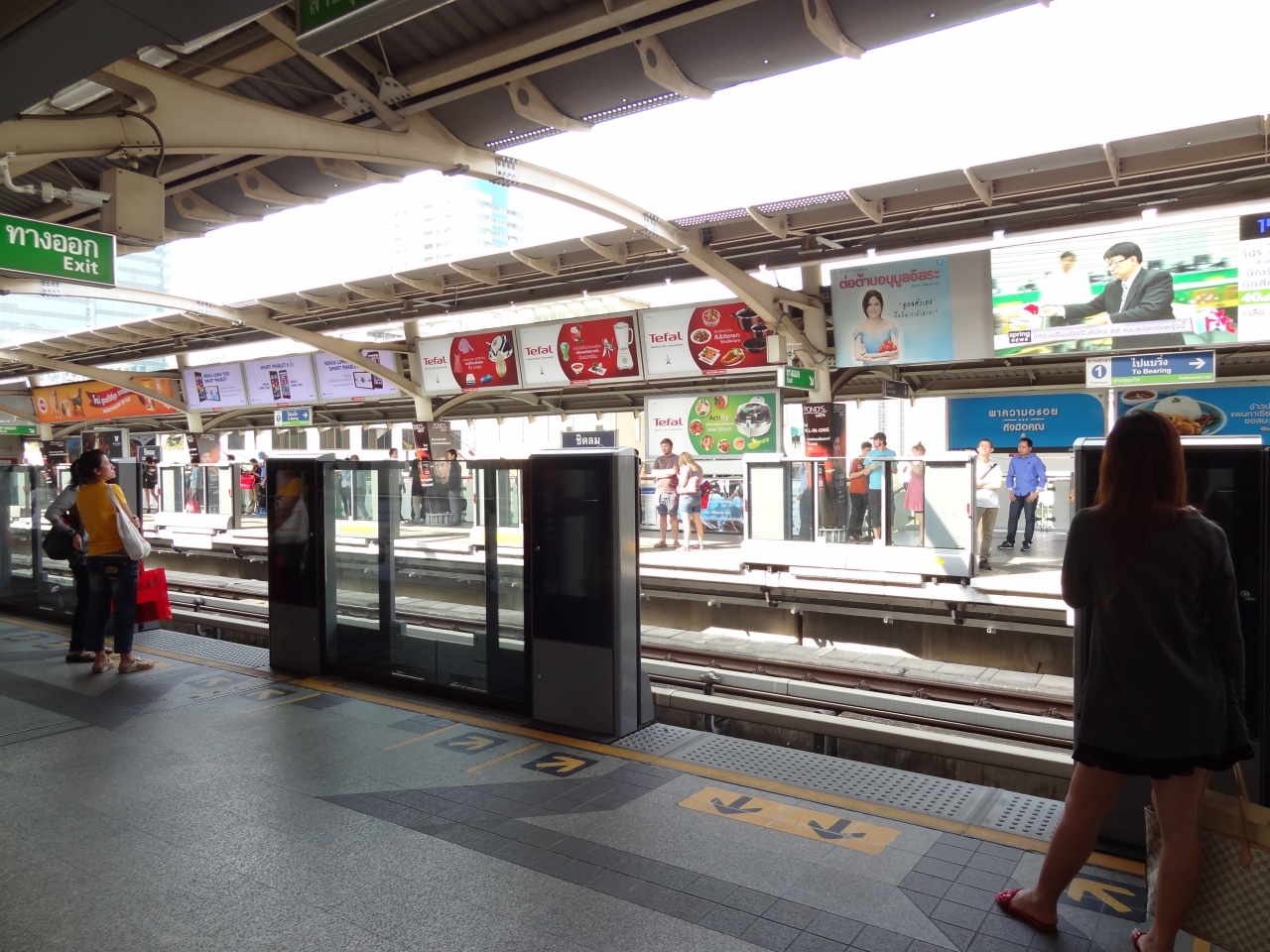 駅のプラットホームは両側に分かれていて、車両は左側走行なので、目的地のだいたいの方角がわかっていれば、どちらのホームに上がればいいか見当がつきますが、スクンビット線とシーロム線が交差しているサイアム駅だけは構造が違うので注意が必要です。