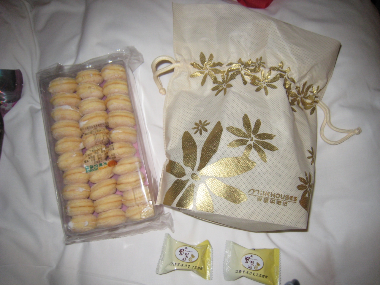 一口パイナップルケーキは個別包装20個入が巾着型ポーチに入って199元。賞味期限は1ヶ月でした。外のケーキがチーズ風味に感じました。