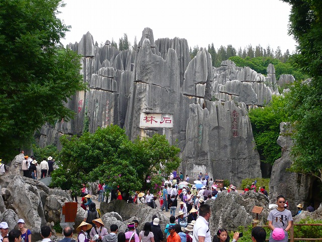 昆明の東部バスターミナルからバスで1時間半ほどで着きます。入場料175元でした。地図が欲しかったのでスタッフに尋ねましたが、チケットの裏にあるよと言われ見て見るも、かなり大雑把なものでした。敷地内に地図が書かれた看板もありますが、これもまたかなり大雑把でした。大石林と小石林に分かれており、大石林は観光客でごった返していましたが、小石林は迫力はさすがに負けますが、人も少なくきれいに手入れされていました。