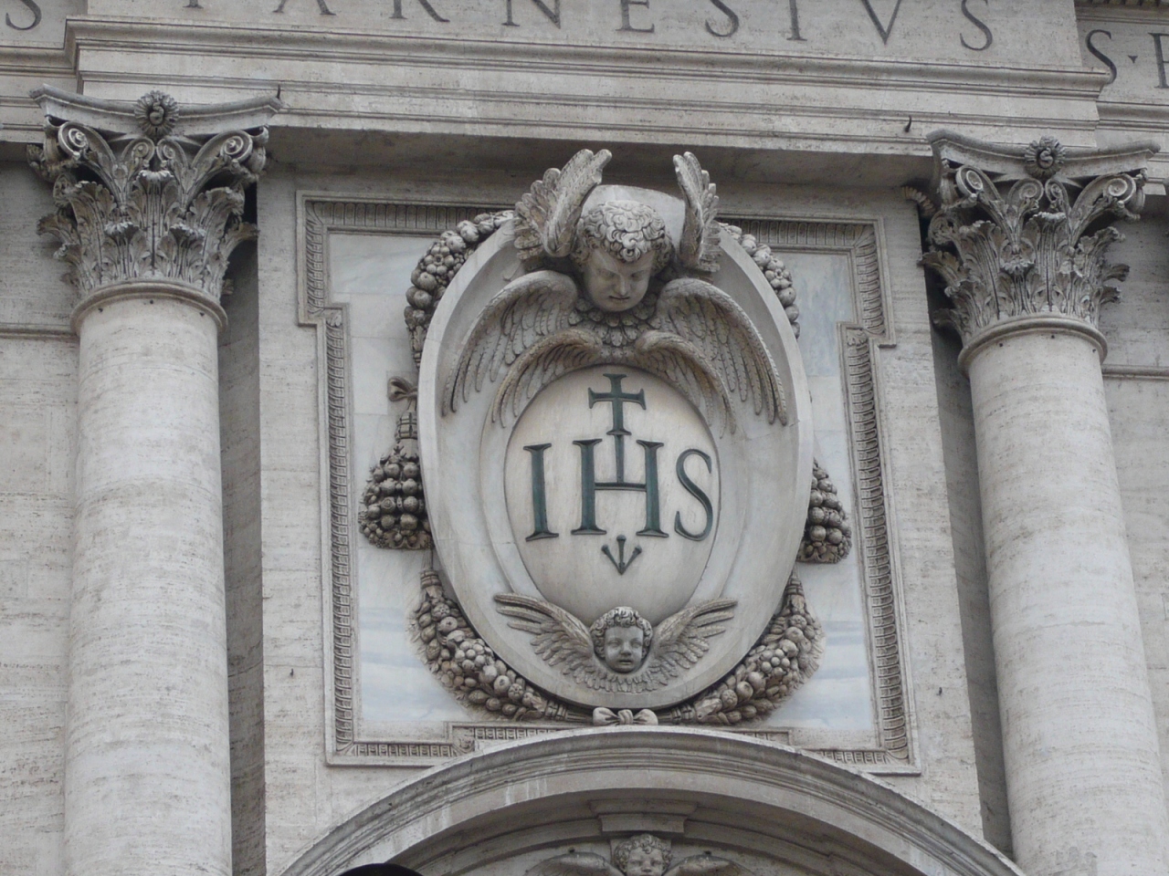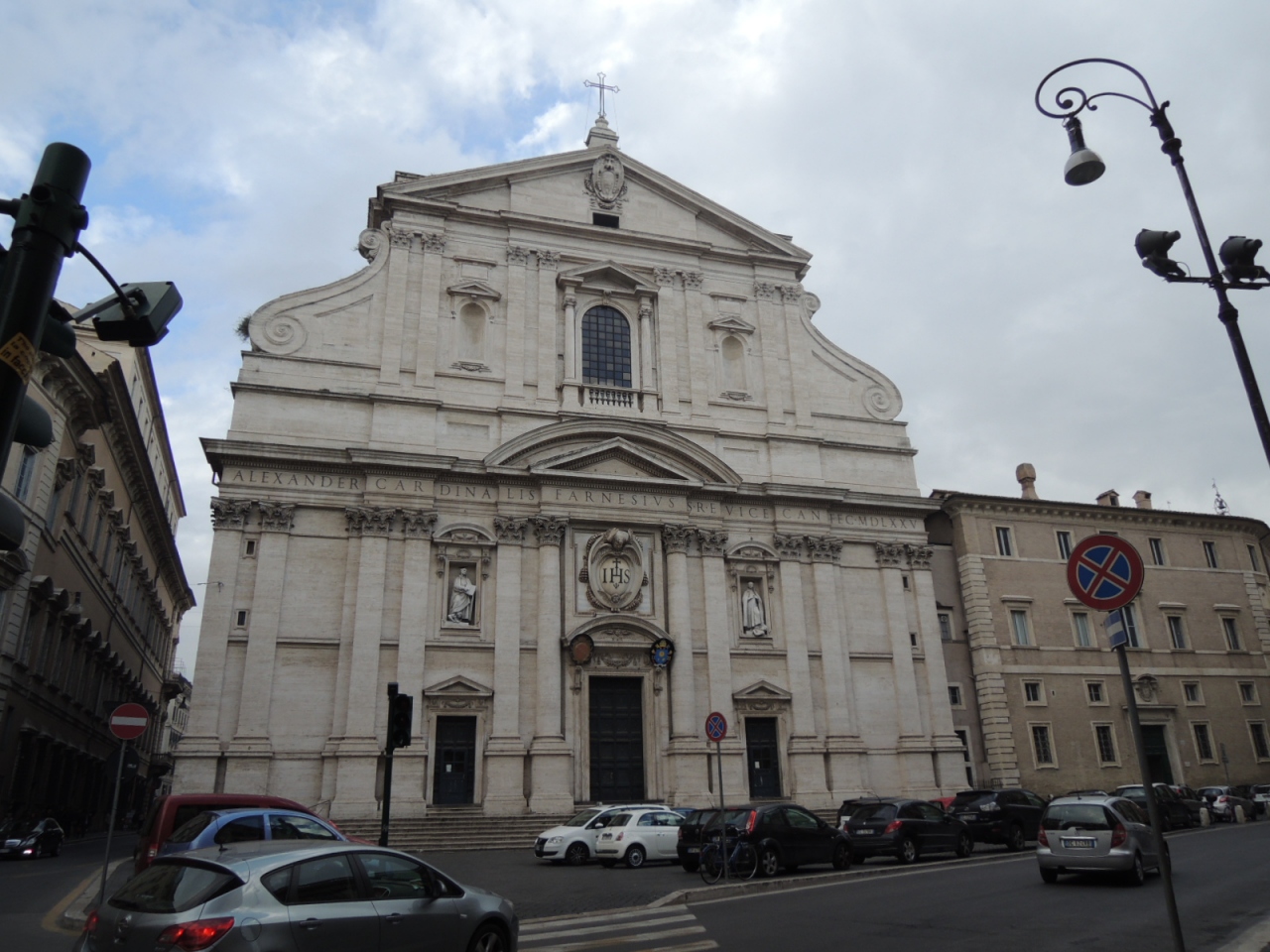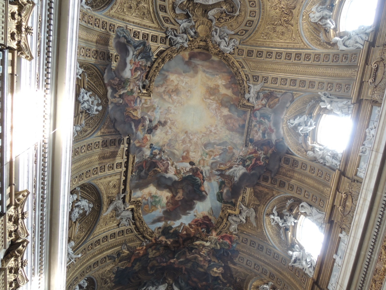 ヴェネツィア広場の近くに位置するイエズス会の総本山教会です。イエズス会の紋章「IHSの字の上に十字架」がファサードや天井画に見られます。教会内部は絢爛豪華、ギンギラです。バチッチャ作の有名な天井画「キリストの御名の勝利」を良く見ると、「IHS&十字架」から眩しいくらいの光が発せられています。