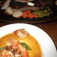 21時からだと飲み物が半額と知り、21時に行こうと思っていたけど相方がお腹がすき、結局21時まで待てなかった。19時半頃お店の前を通ると外まで並んでたけど、20時半頃行くとがらがらですぐに入店できた。私はお腹すいていなかったから、エビのガーリック炒めのようなのを、相方はサーロインステーキ&ライスを。ミディアムレアでおいしかった。エビはもう少しガーリックが効いてたらもっとおいしかった。日本未発売のASAHIのビールは飲みやすかった。