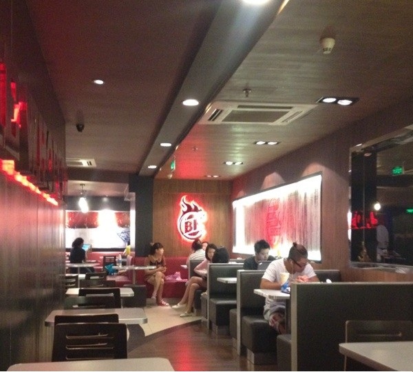 新世界百貨店からエレベーターで降り、人民広場地下鉄へ移動する際に通る地下街にあります。なんとここのバーガーキングの真横にはマクドナルドがありました。数年前にここを通った時にも両店ありましたので、いい勝負をしているんでしょう。
