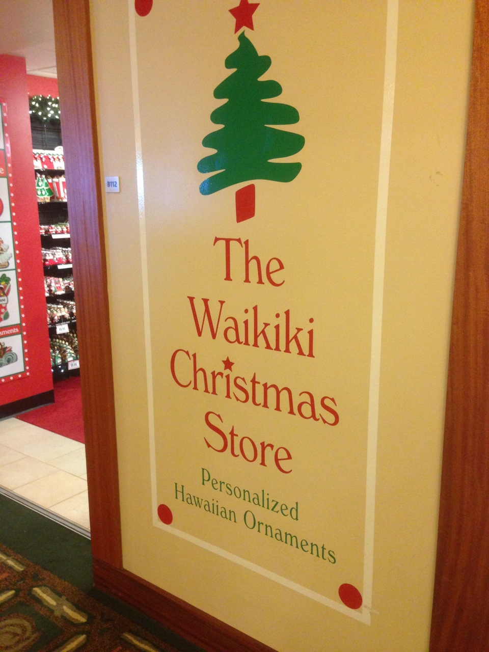 アウトリガーリーフには有名なステーキレストラン「ショアバード」があって、ハワイに行くたびに必ず訪れています。今回は最終日の夕食にと思いショアバードに向かっていると、クリスマスのオーナメントが目に入って、こちらのお店に気付きました。オーナメントからぬいぐるみ、ステッカー等々、クリスマス用品が目白押しで感動的でした。