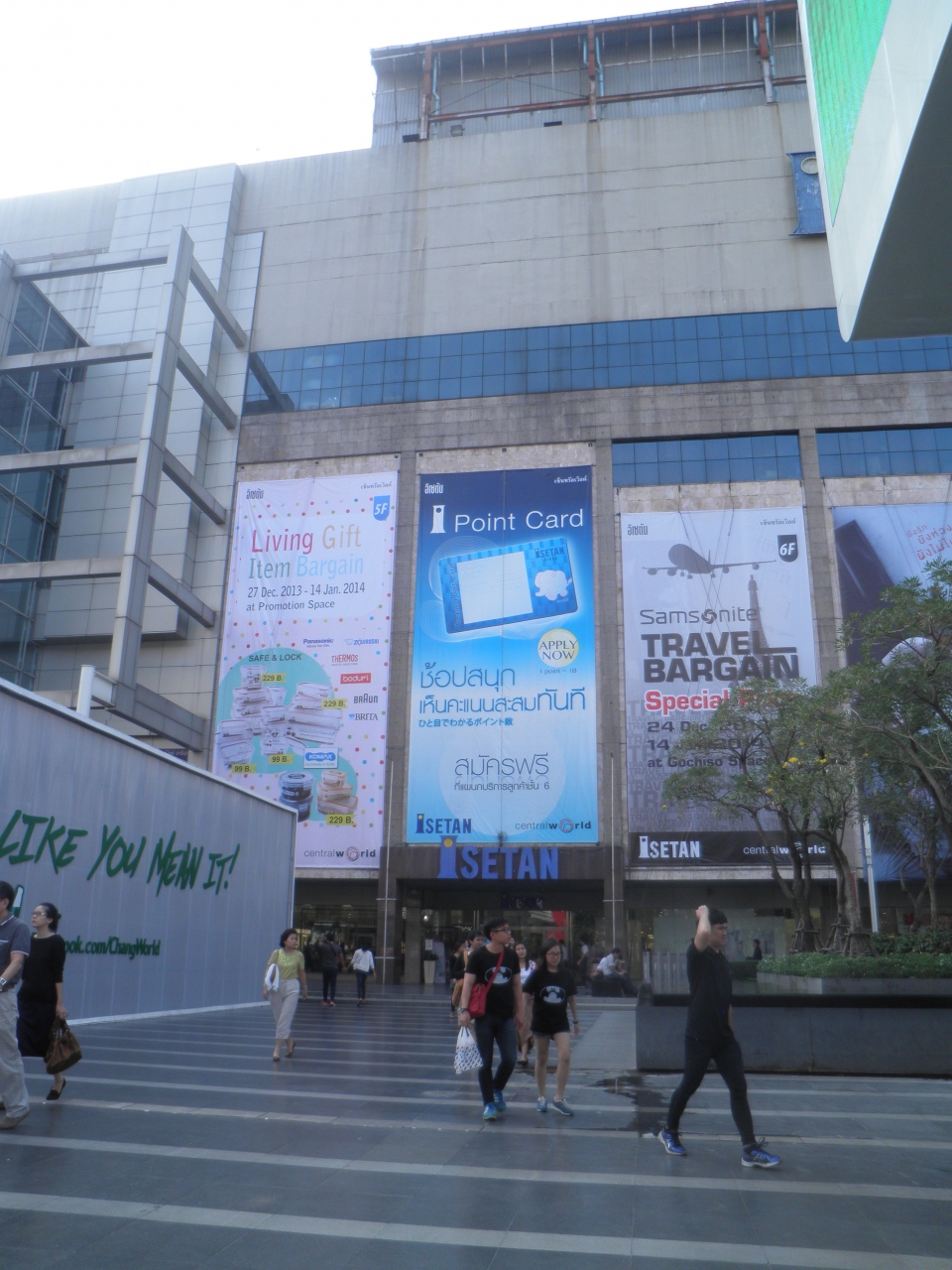 バンコクの民主記念塔付近からセンセーブ運河のボートに乗ってプラトナームの船着き場に到着しました。 ボートの料金を支払うときに、「イセタン」といったらわかってくれました。 伊勢丹のあたりは、ビックCやZENなどもありショッピングするのが楽しいところです。