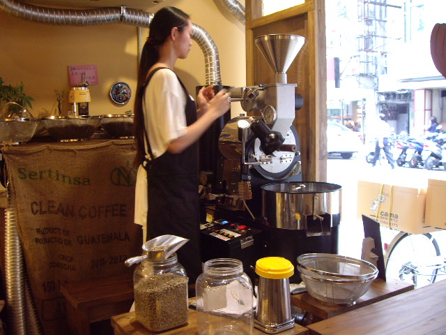 店内で焙煎した豆で1杯1杯マシーンで抽出してくれます。持ち帰りも店内で飲むこともできます。注文すると直径10cm位の円盤を渡されます。できあがると、これが赤色点滅して教えてくれます。セブンイレブンではアイスコーヒー50元ですのでコーヒーを飲むのでしたらこちらのお店をお勧めします。接客態度も雲泥の差です。もちろんこちらのお店の方がいいです。