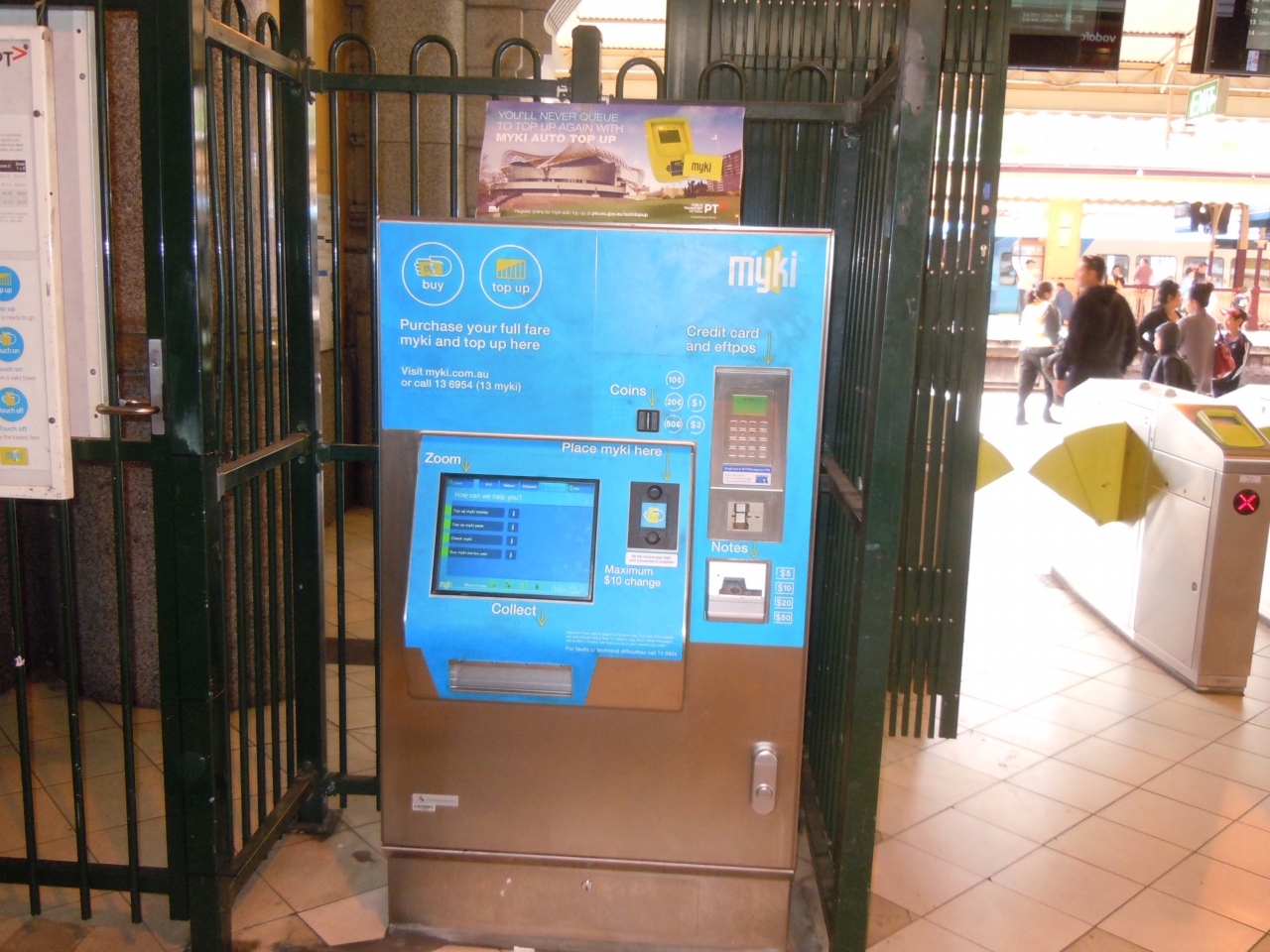 メルボルン市内を走るメトロのみならずバスなどの交通機関の共通チケットがmyki。車内では買えませんので、主要駅やコンビニのセブンイレブン(いたるところにあります)で購入します。mykiを乗車前にタッチ、残額も表示されます。チャージも簡単。