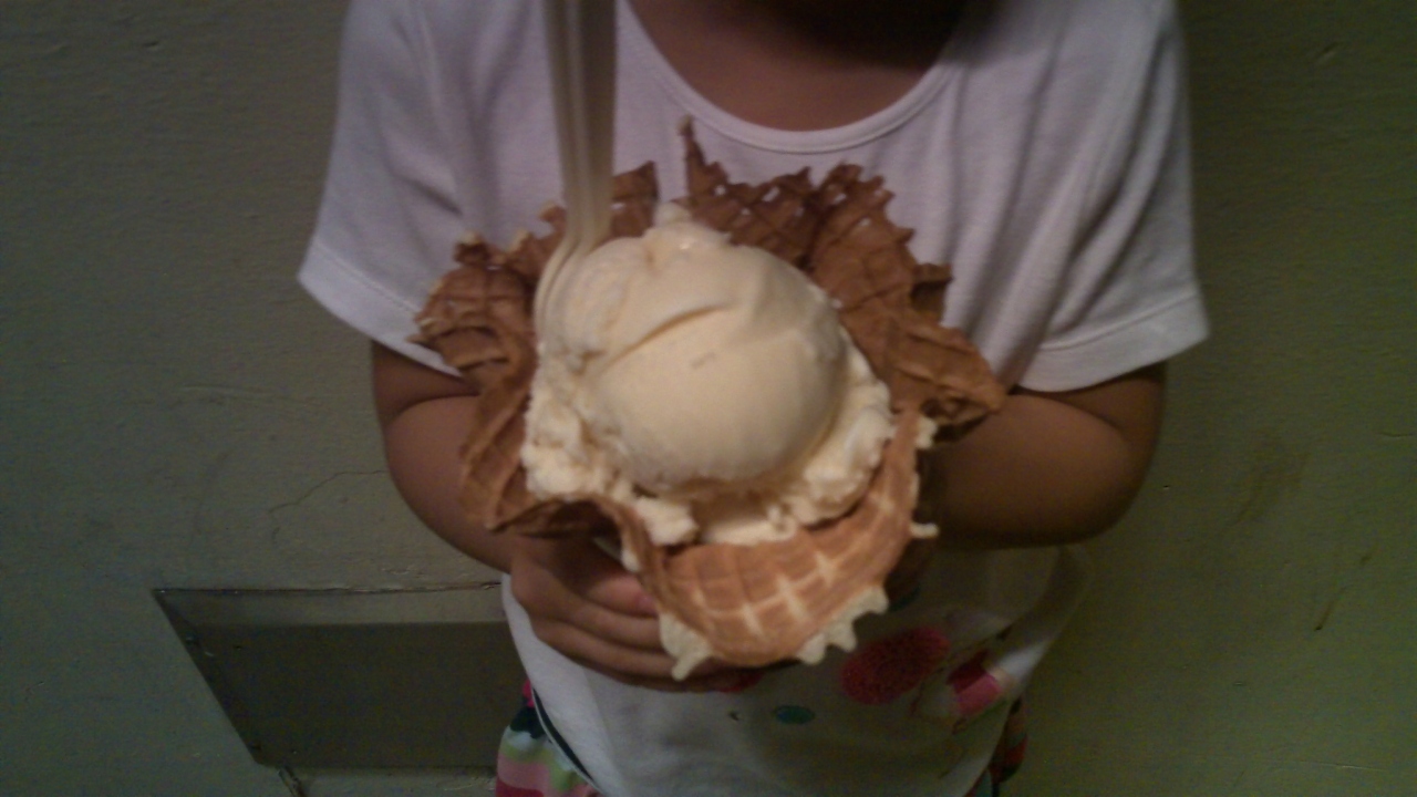 ヒルトンホテルの中にあるので、夕食後のデザートに娘と食べました。5日間の宿泊中に2回は購入しました。コーンにチョコレートがデコレーションしてあってアメリカーンという感じですね~。バニラアイスクリームは濃厚で美味しかったです。もっと他のアイスも冒険してみたかったです。