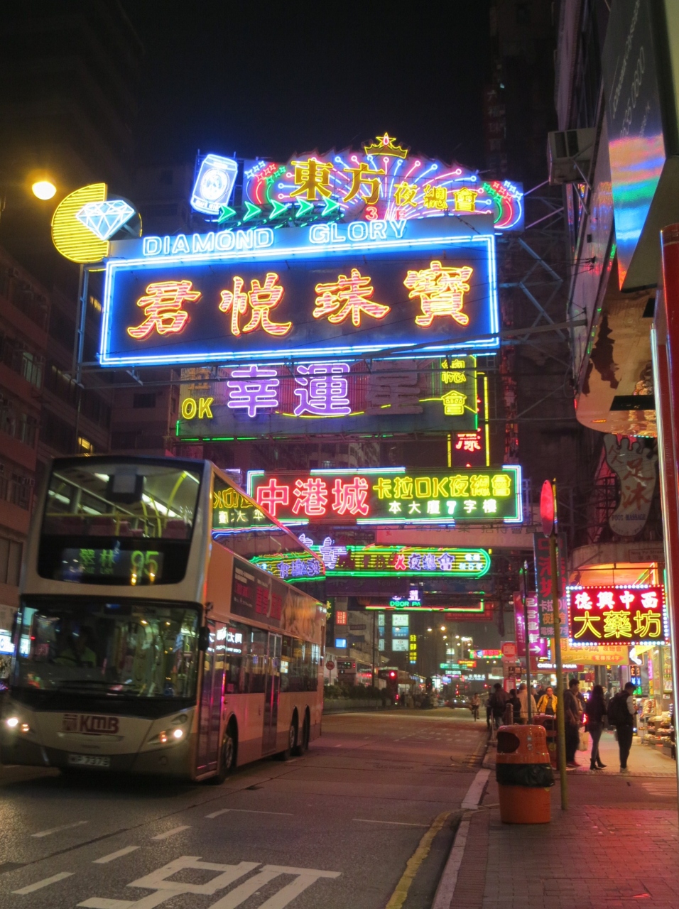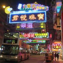 おすすめは、ジョーダンとチムサーチョイからの途中に、ネオンの看板が集中しているところがあります。