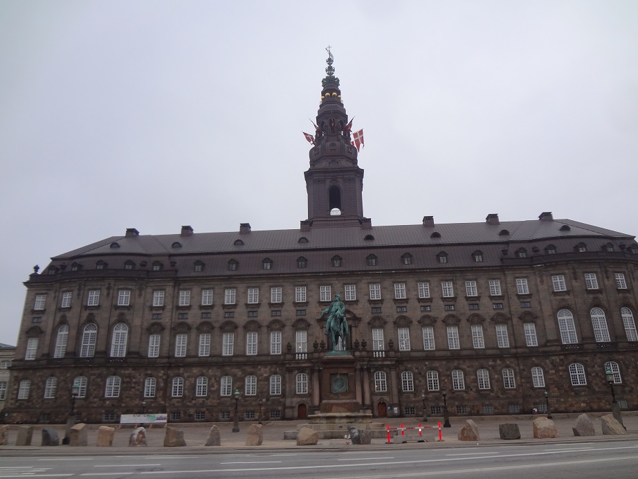 コペンハーゲンの中央にあるクリスチャンボー城。とても立派な建物です。政府の迎賓館として使われ、国会議事堂・内閣府・最高裁判所の三権に関する施設もあり、重要な建物です。