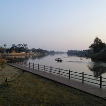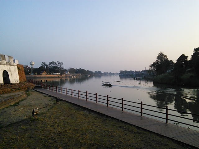 チャオプラヤー川とパサック川の合流点にあります。川沿いにはウッドデッキが設けられチャオプラヤー川が遥か先まで見通せます。訪れるならやはり夕刻がいいでしょう。釣り人が集まりだし、 タグボートに引かれた大型の積載船がゆっくりと通り過ぎていきます。対岸のワットパナンチューンからは読経が漂い、なんとも心地よい時間が過ごせます。