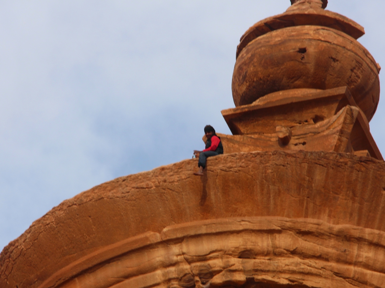 そして1月の頃は、エド ディルに西日があたり遺跡が輝き始めるのは15:00(冬時間)頃。夕方が近づくと遺跡の陰影が徐々に深くなり、色合いも白っぽい色から薔薇色に変化し始めます。日が傾くまで遺跡の色の変化を見ていたいのですが、それはできません。