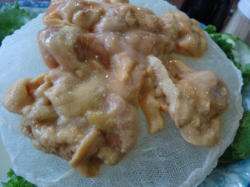 ガイドブックには必ず載っているお店で観光客でにぎわっていました。この店の一番のお勧めは生ウニです。僕の中ではここではこれだけでも良いぐらいです。その他に食べた、刺身や炒め物は特別な感じは特になく、台湾で考えたら値段はお高めです。