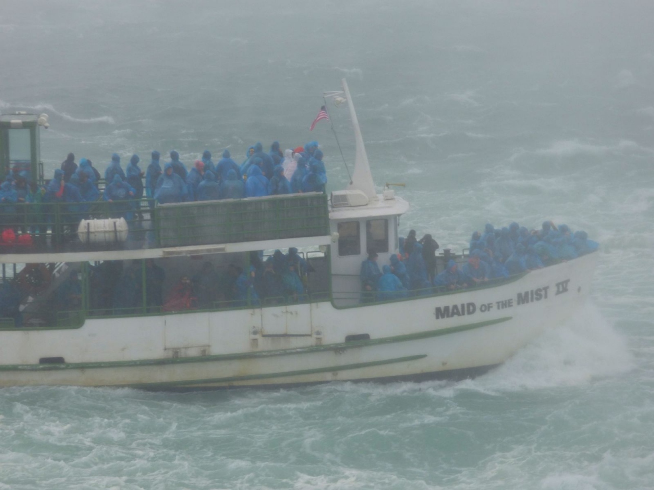 概ねこうした観光地ではどこでもそうですが、並んでいるときからその気になってどんどん期待が高まります。青いペラペラのビニール合羽が私のような背の低い人間には足までカヴァーできますが、背の高い米国人やカナダ人にはできないわけで、「こんな時は私の方が有利でしょ?」と彼らと話しているうちに順番が回ってきます。