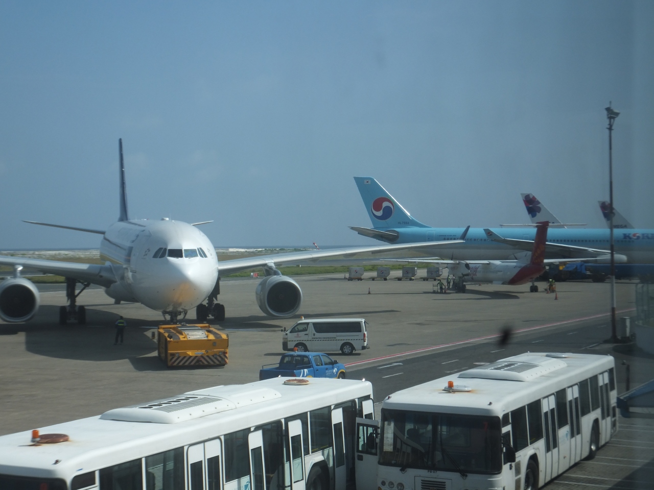 ゲートが少ないので、沖止めになりバスでの移動が多いのが残念ですけど、モルディブだからしょうがないですよね。