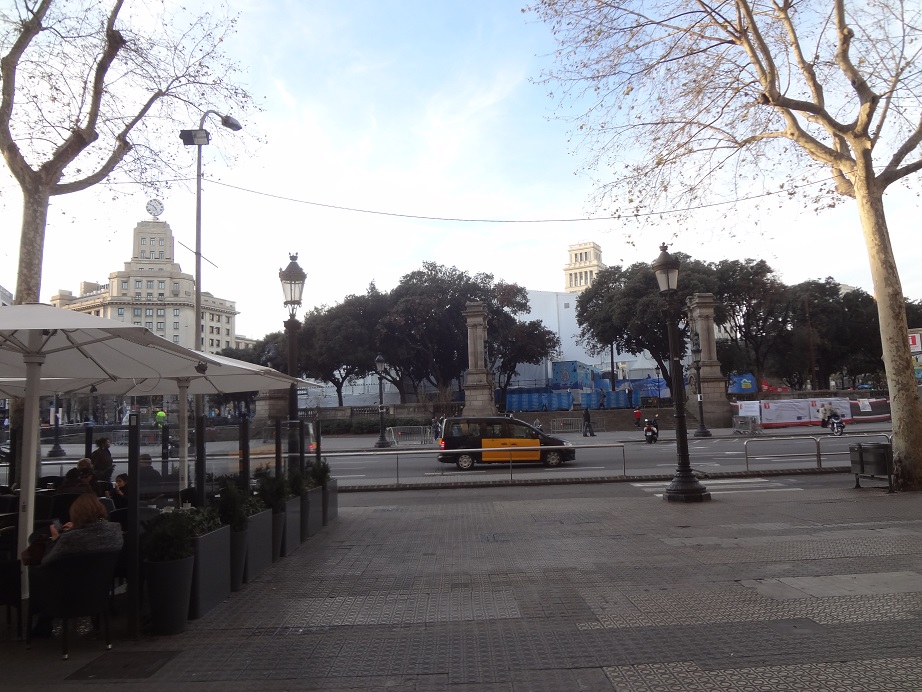 バルセロナ・エル・プラット空港からのシャトルバスの乗り降り場となっているカタルーニャ広場。バルセロナの旅はここから始まると思います。噴水などあり、地元の人、観光客で賑わっています。