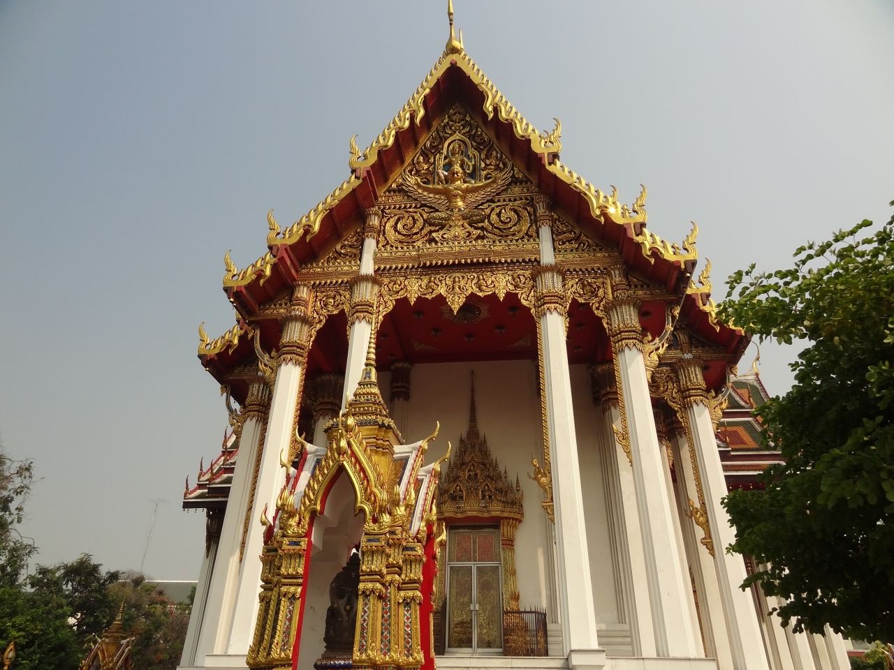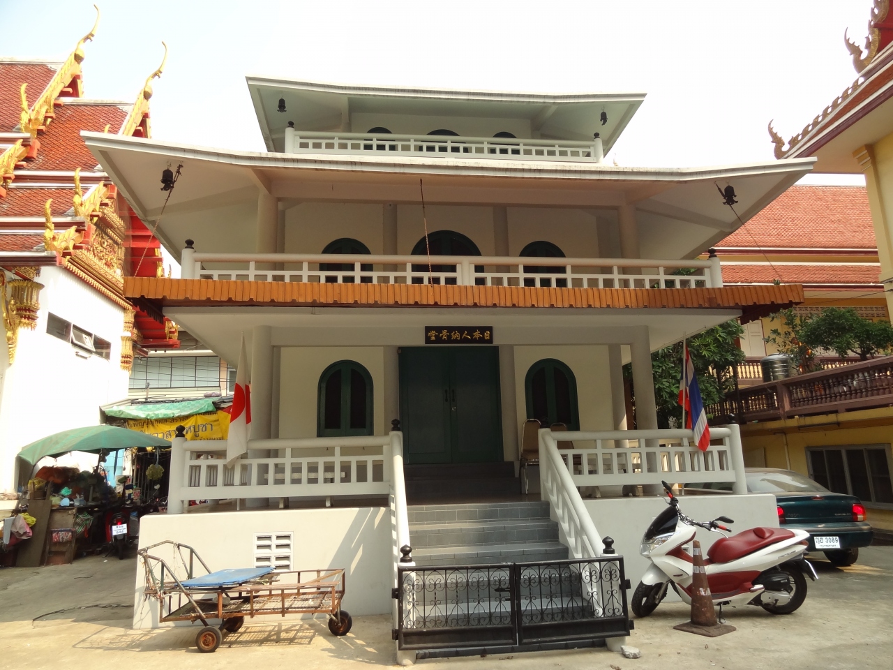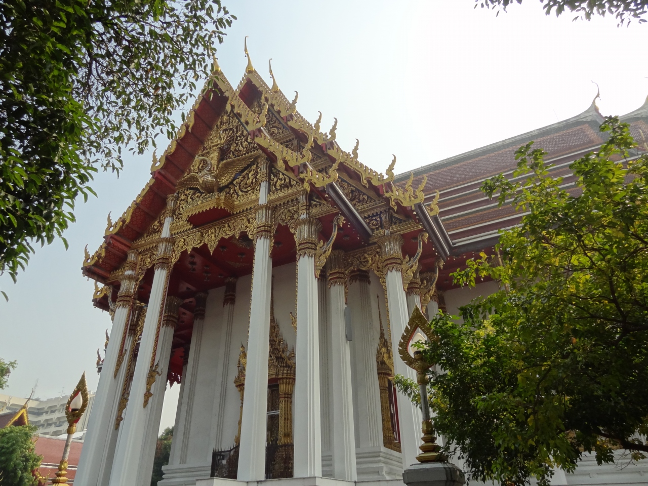 船を使えば近いようですが、私はファランポン駅から中華街を抜けて1時間近く歩いて行きました。日本人納骨堂が有名ですが、本堂の装飾やクメール様式の仏塔など他にも見所がたくさんあります。観光客は少ないので落ち着いて散策できますが、本堂は閉じられていて中には入れませんでした。