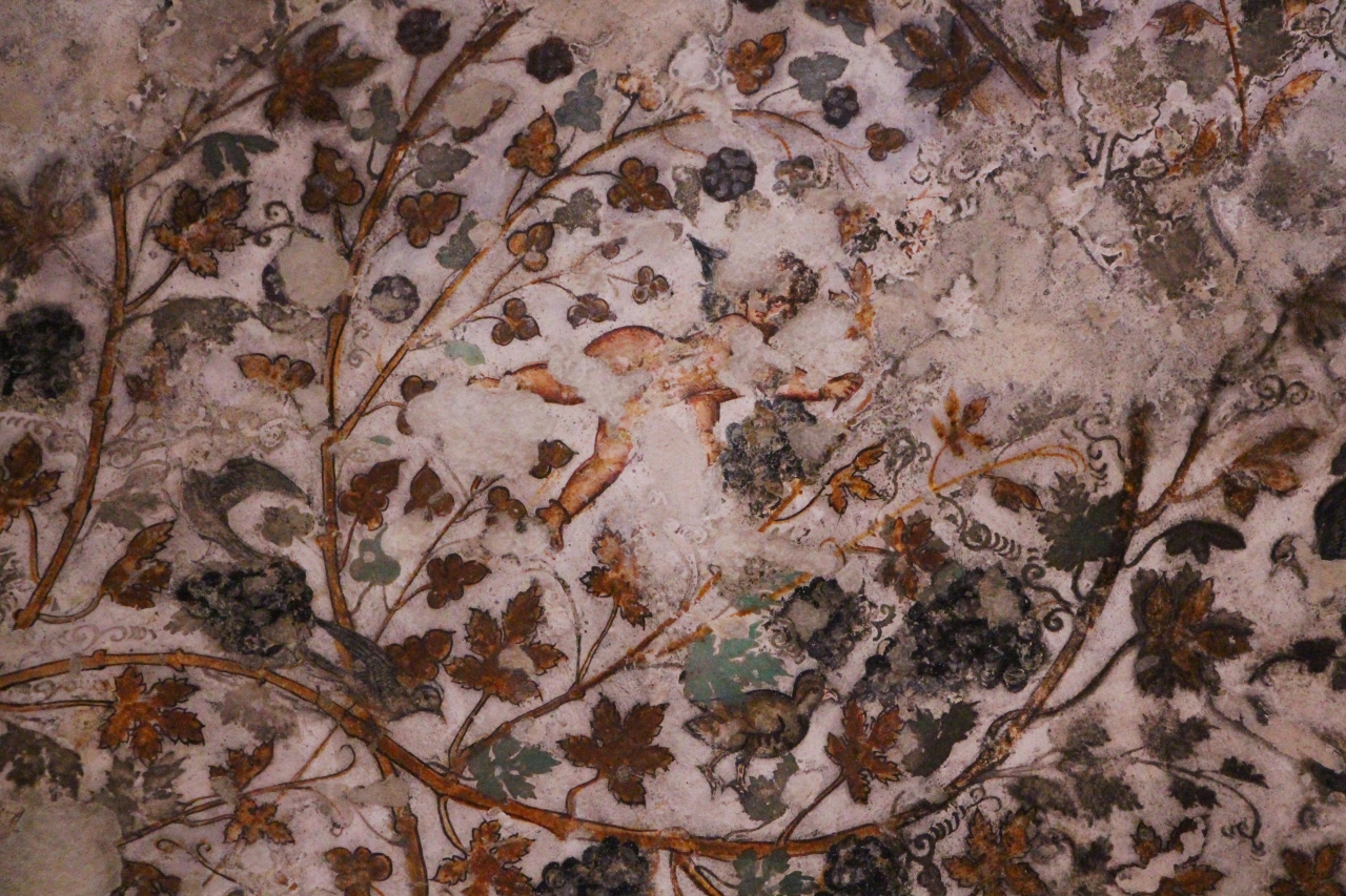 ぱっと見は、そこに壁画があるようには見えないが、3階部分の天井に色鮮やかな壁画が残っている。葡萄の蔦、天使、花が描かれ、イタリアの絵画を見ている様。
