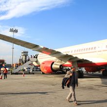ネパール唯一の国際空港です。国際空港と言っても設備は国内空港並みで、バス移動が多く、一昔前の空港といった感じです。