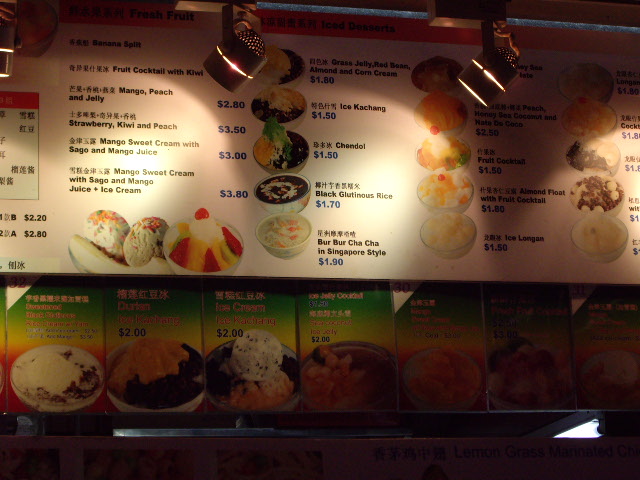 中華・マレーシア・インド料理、スイーツ、ドリンクとメニュー豊富で、どれもおいしくて安い。総合的にみると、いままで行ったことのある東南アジア(タイ、香港、台湾、マレーシア、バリ島)の中ではいちおしです。注文して近くの席に座れば、料理を持ってきてくれるし、食べ終われば片付け専門のスタッフが片付けてくれます。片付けた食器類は、店ごとに戻していました。