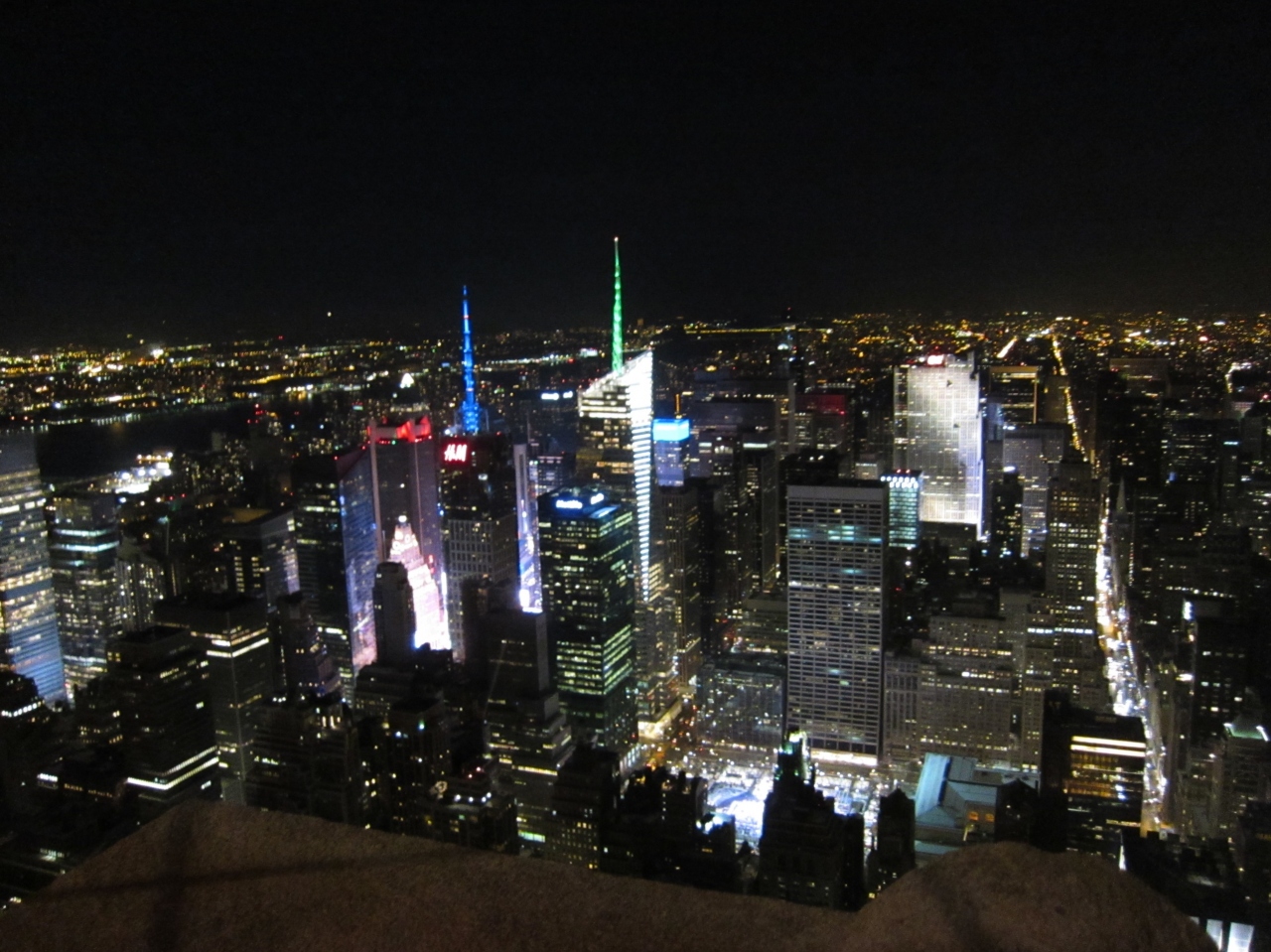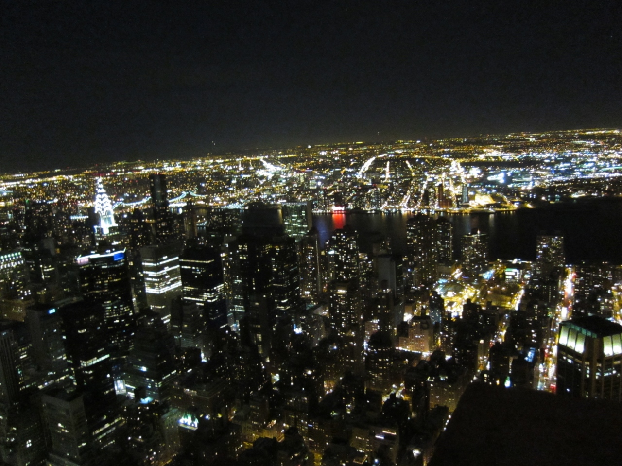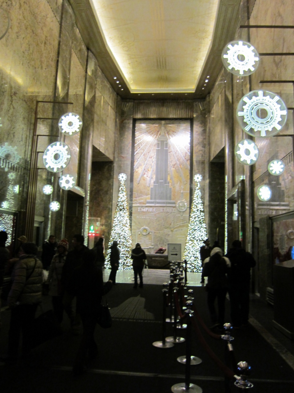 エンパイアステートビルに夜景を見るためにホテルから近いので徒歩で行きました。混で居るかと心配しましたが、スムーズに入場する事ができ、あっという間に案内の展示してある階に到着、その後、展望階に行きました。展望階から観るニューヨークの夜景の美しさが素晴らしく、寒さなど忘れて観ていました。