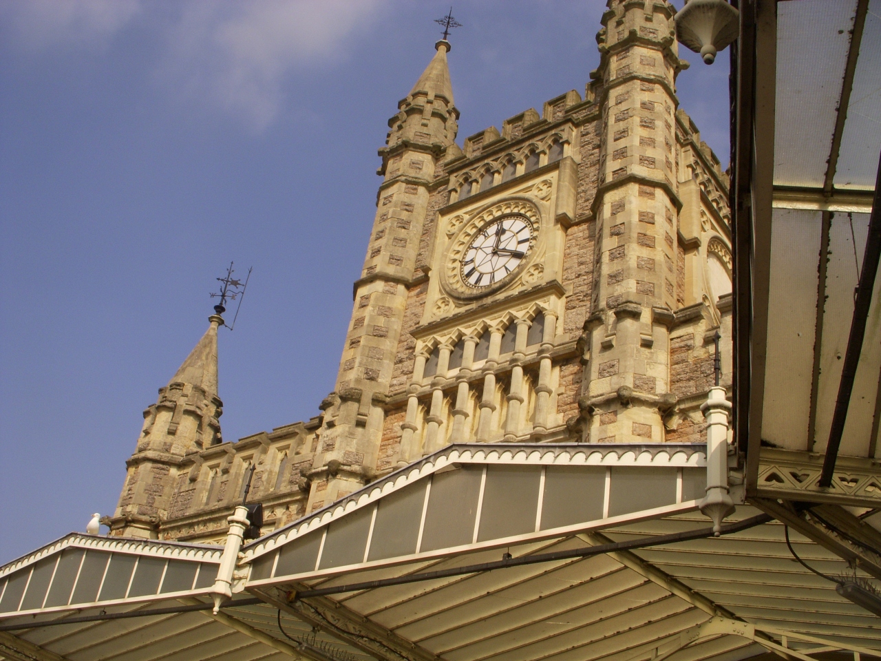 ロンドン~ブリストル~トーキーといった移動ルートでここにやってきました。ブリストル空港からバスで駅行きが出ています。利用する人が非常に少なく、レアな感じです。ここでは電車時間までのほんの少しの滞在でした。駅舎に歴史を感じますね。なかも広いホームが続いています。